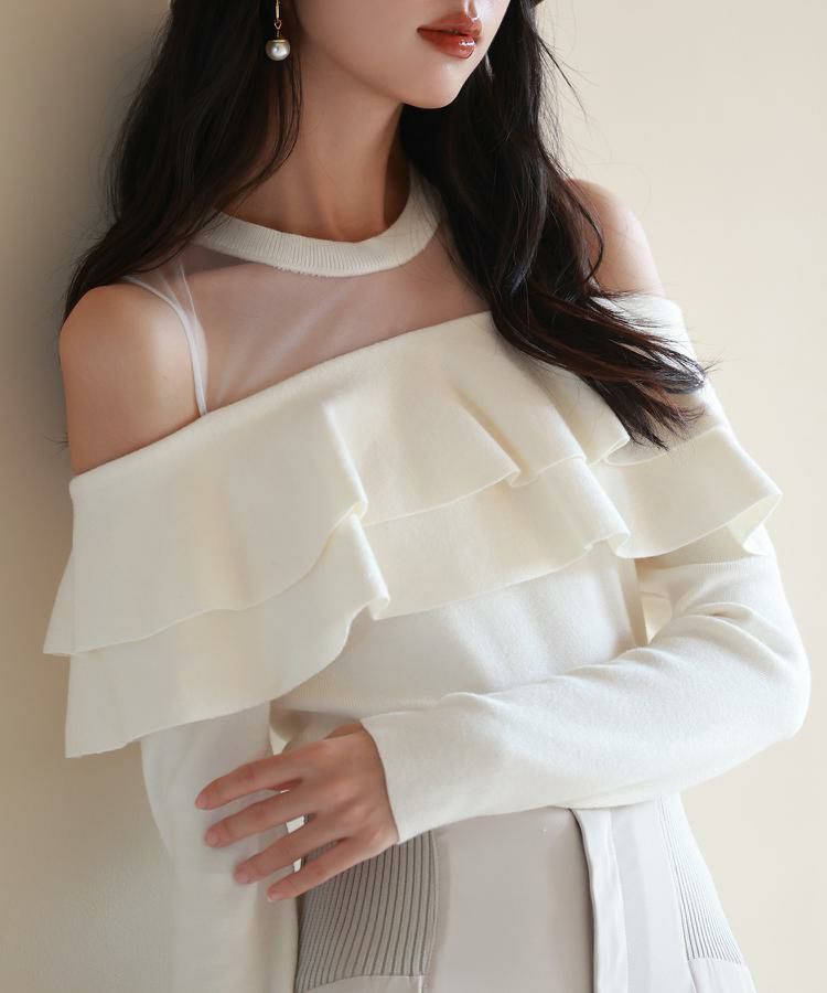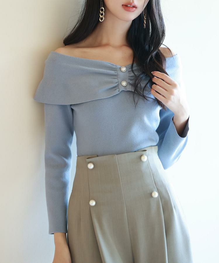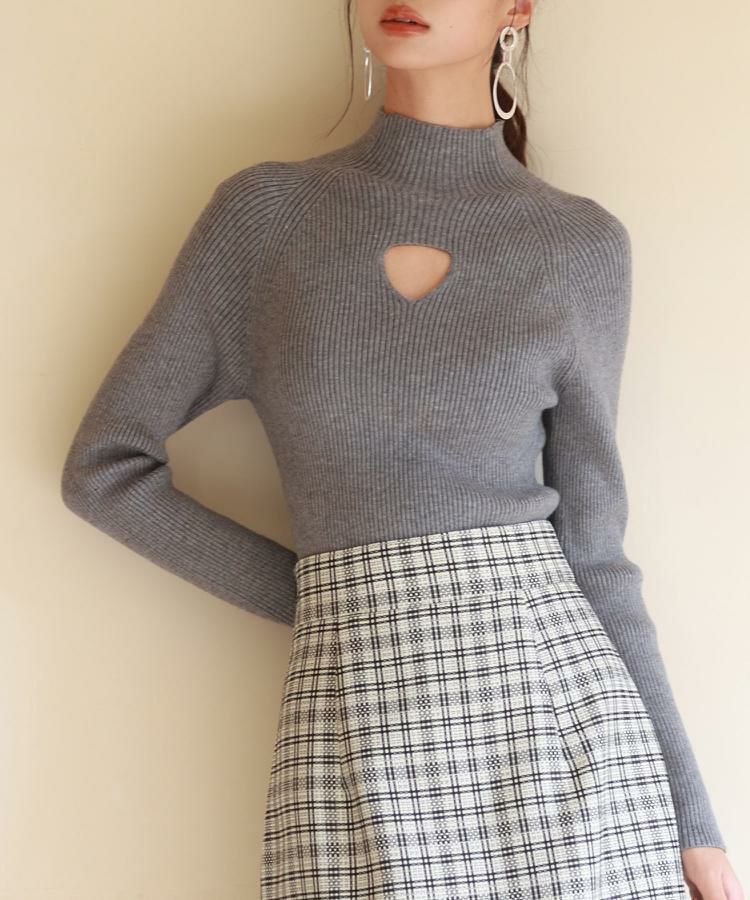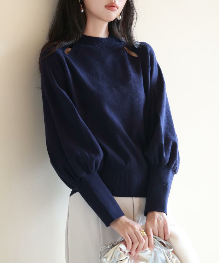 配色になったポロネックディティールの襟元。コーデに遊び心をプラスし、襟付きが強調されてきちんと感もあります。アイボリーのみ同色です。