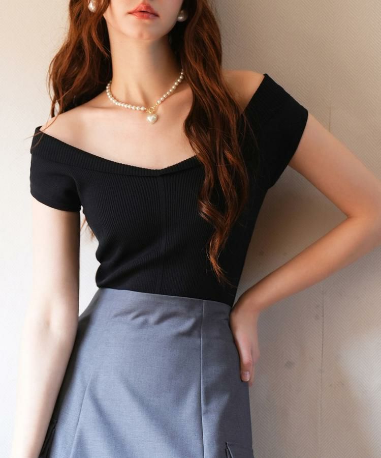 素材は伸縮性のあるニット編み。ボディラインにフィットしながらも締め付け感がなく、着心地が快適です。