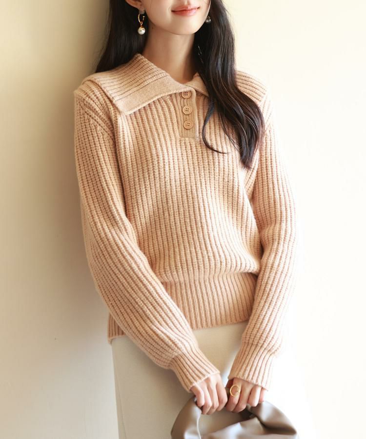 配色が遊び心をプラスするポロネックニットプルオーバー。