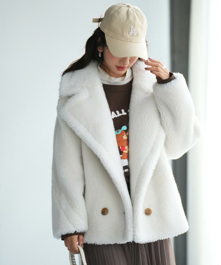 トップスはゆったりとしたシルエットで体型カバーも叶うクロップド丈のカーディガンボレロ。