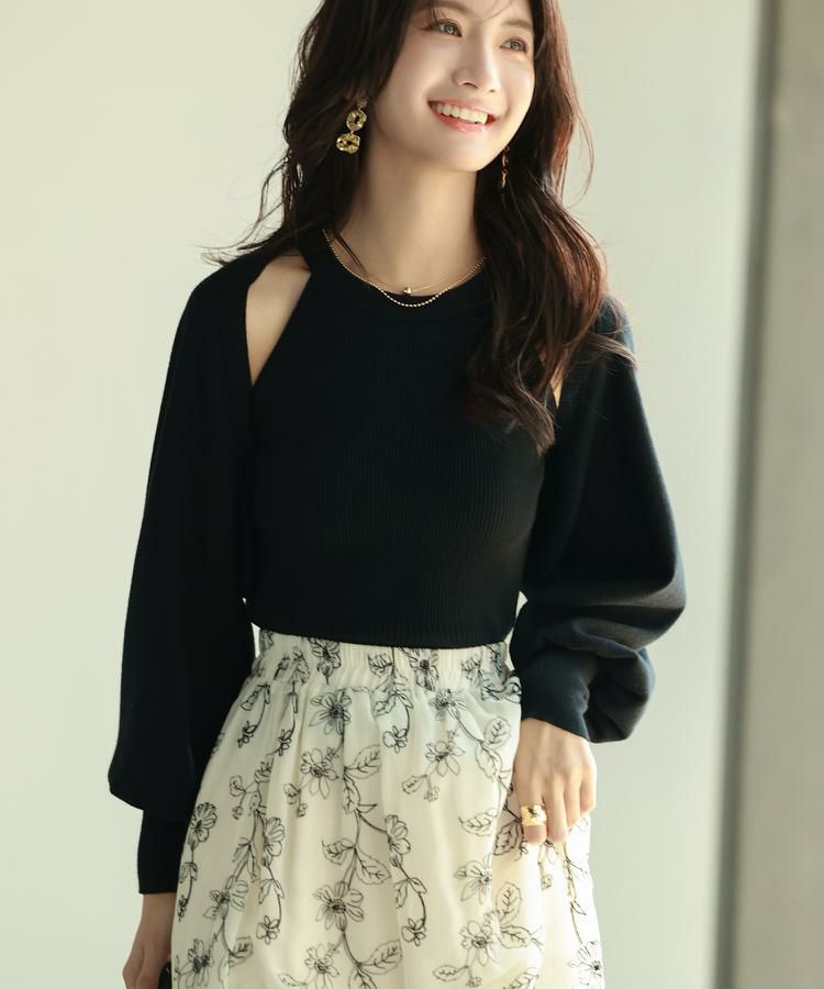 ノースリーブニットとボレロ風カーディガンのアンサンブルアイテム。