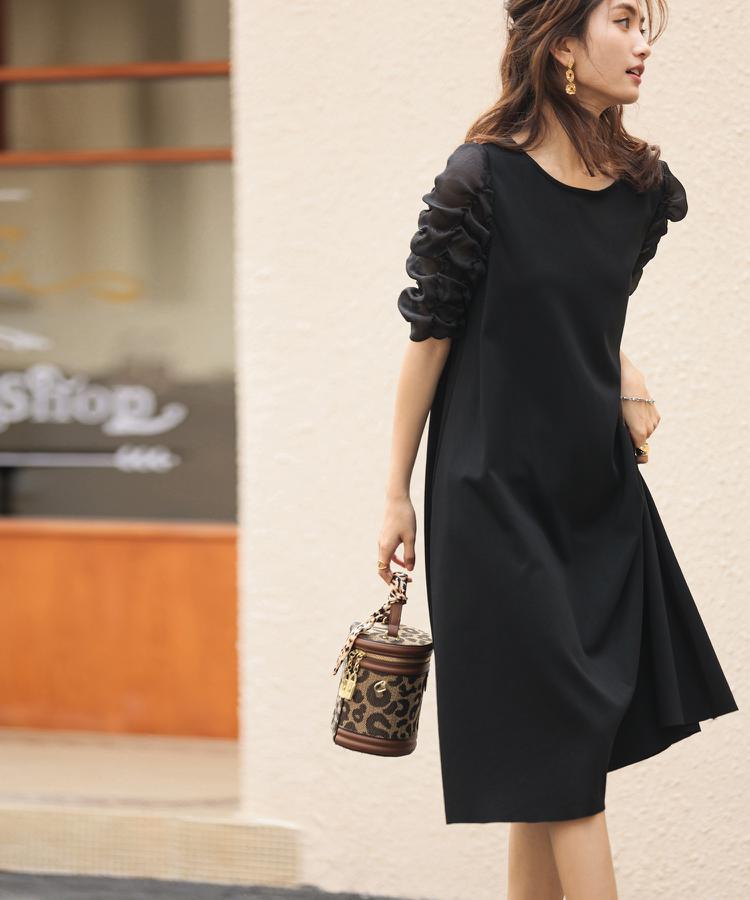 露出は控えつつも首元や肩ラインを美しく見せてくれる女性らしいデザインです。